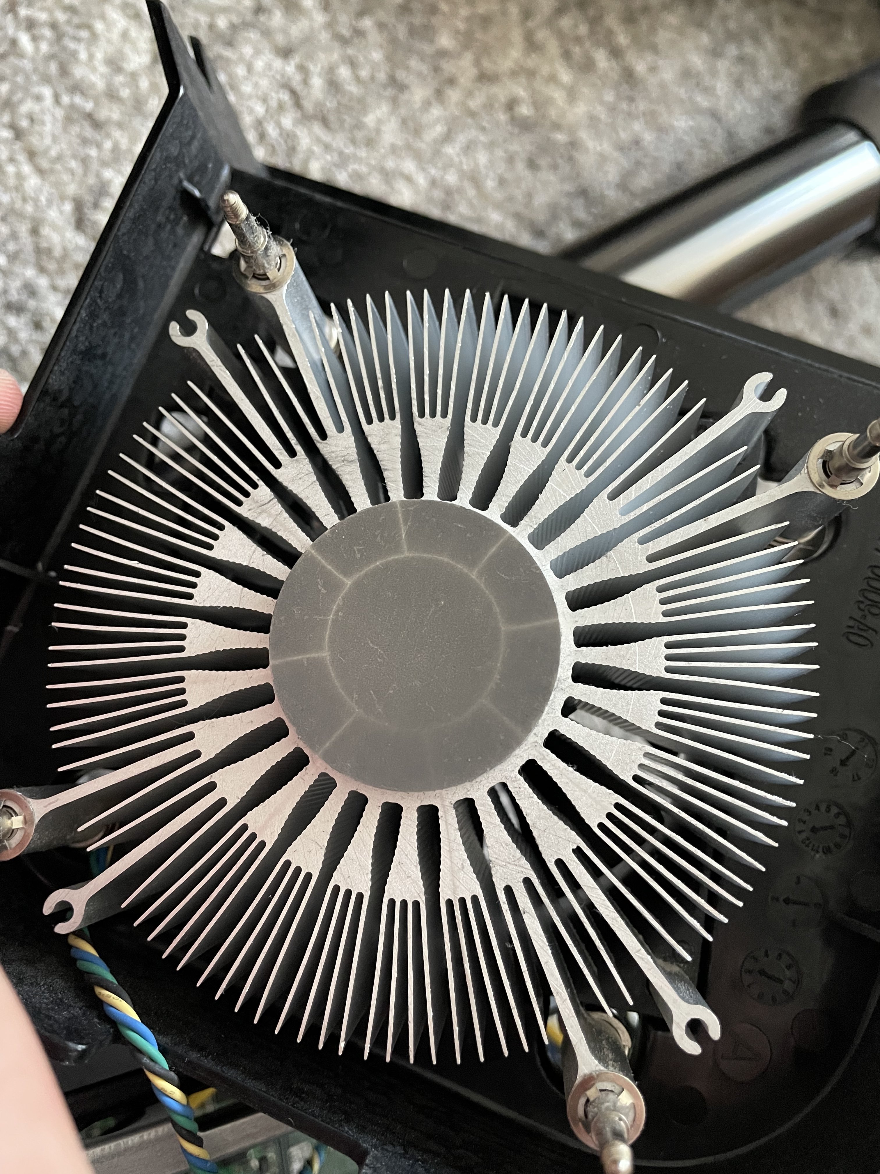 Wieder fein sauber machen und erneut WLP auftragen. Die WLP so groß wie eine Erbse in die Mitte der CPU und dann den Kühler drauf hat bisher immer funktioniert bei mir.