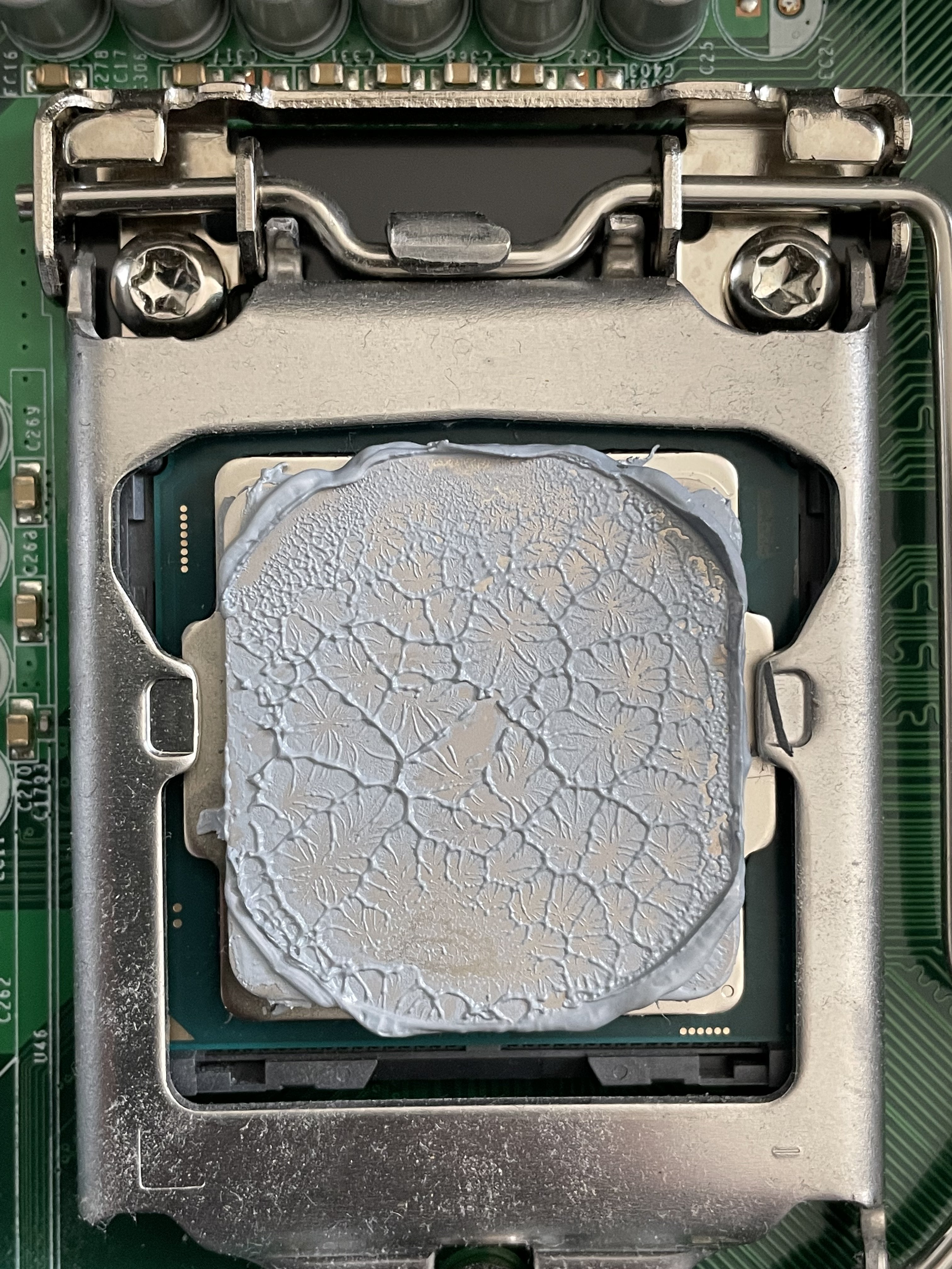 Hi, habe heute eine neue CPU eingebaut und WLP aufgetragen und über die ganze Fläche verteilt. Hatte jedoch Bedenken das ich zu viel WLP aufgetragen habe.