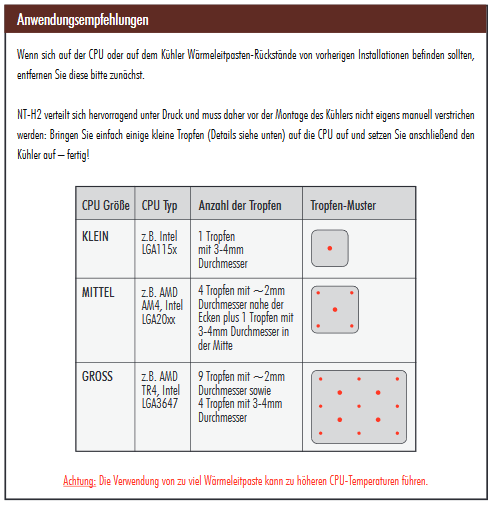 Verstreichen lohnt sich dann eher bei dezentrieren CPUs, wie den AMD 3xxx) da man so auf jeden Fall die Oberfläche über den Dies direkt erwischt, damit dort am schnellsten die Hitze abgeführt werden kann.