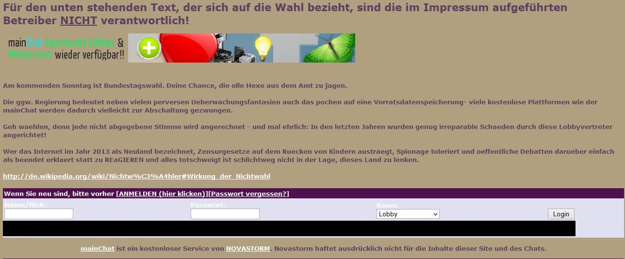 an jedem eingang eines kostenlosen chats dieses anbieters prangte und prangt immer noch diese wahlwerbung!