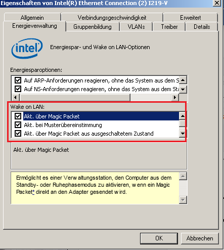 Da ich mir erstmal nichts dabei gedacht habe, habe ich Wake on Lan so gut wie möglich konfiguriert.