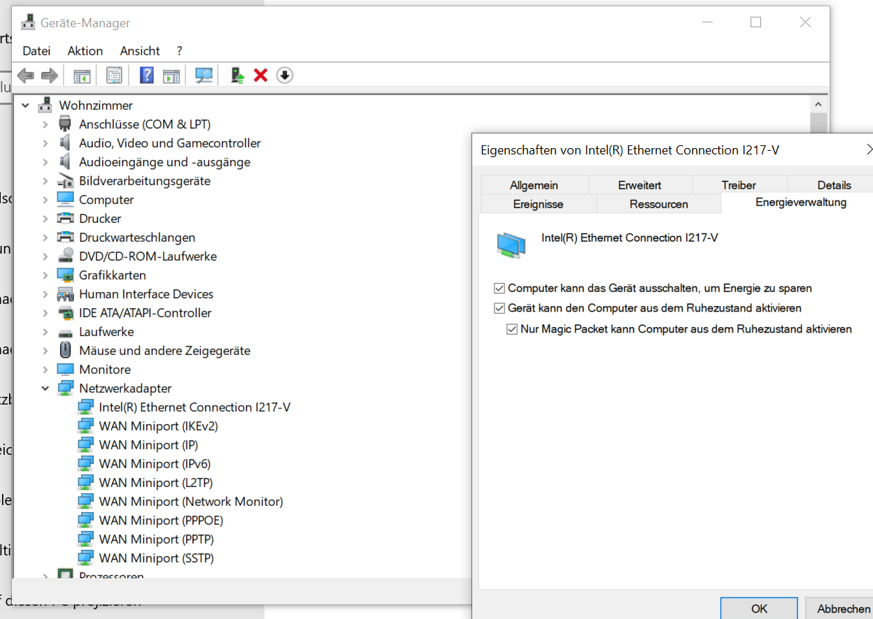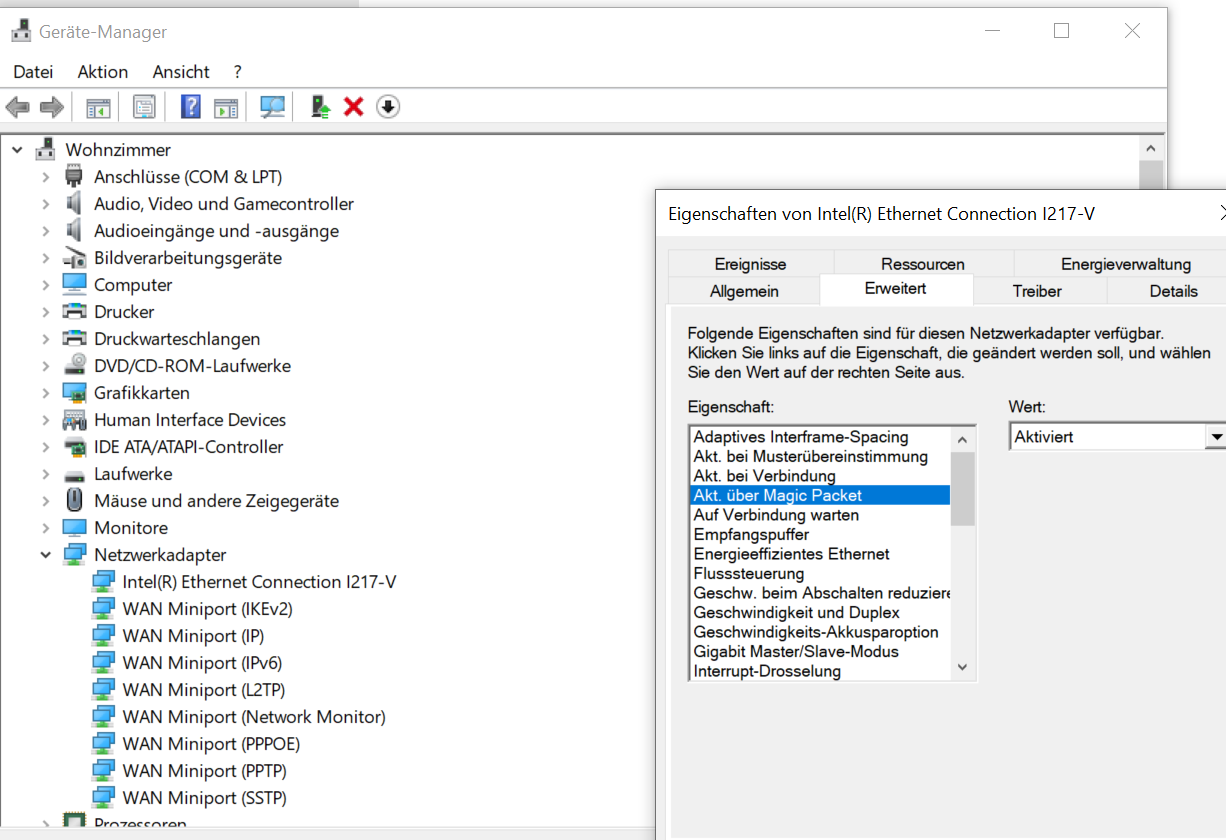 ich habe auf einem PC Windows neu installiert und habe seitdem ein Problem mit Wake on LAN. Vorher ging alles problemlos mit meiner Meinung nach den gleichen Einstellungen. Vielleicht hat einer von euch eine Idee was noch fehlt?