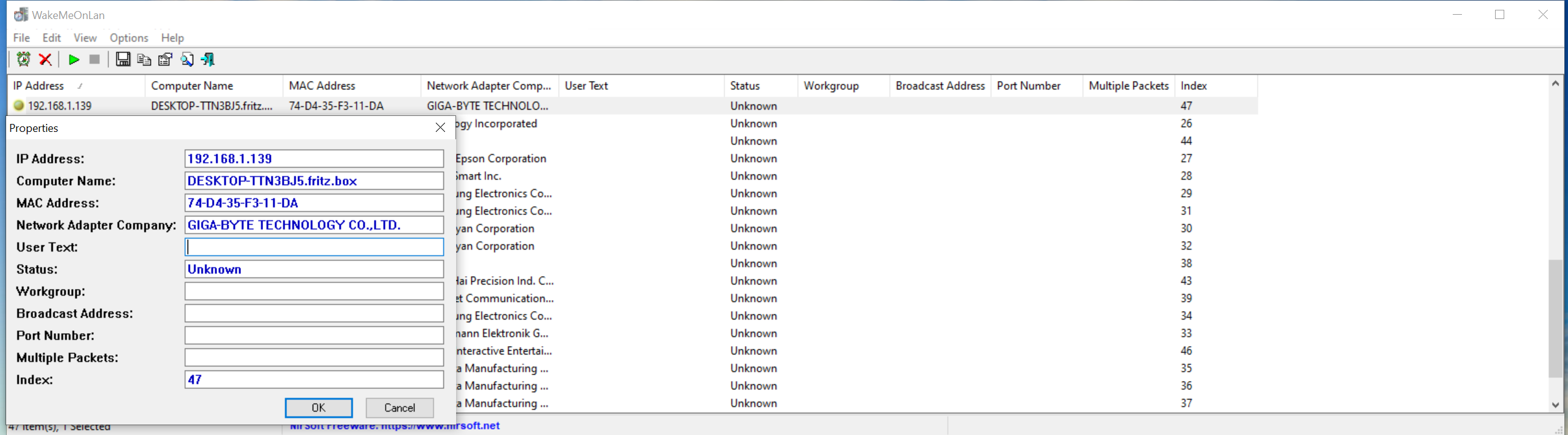 Ich habe auf meinem Laptop "WakeMeOnLAN" installiert. Der Remote Rechner der hochgefahren werden soll wird auch gefunden (Siehe Bild 3). Allerdings funktioniert das nur, wenn sie der Remote Rechner im Standby befindet. Wenn dieser komplett runtergefahren wird, geht das nicht mehr. Die Einstellungen des Netzwerkadapters die ich angepasst habe sind in Bild 1 und 2 zu sehen. Ich glaube mehr hatte ich das letzte Mal auch nicht eingestellt. Vor der Neuinstallation ging alles problemlos.