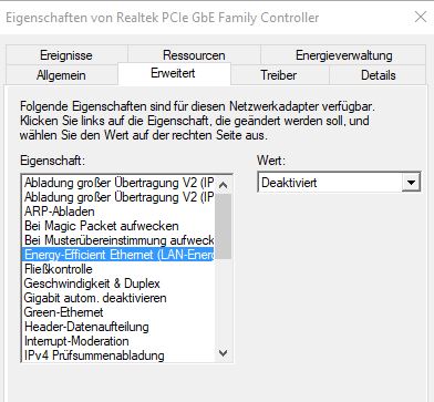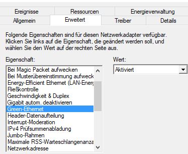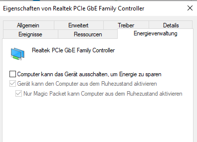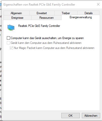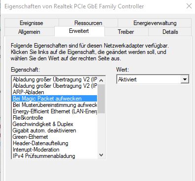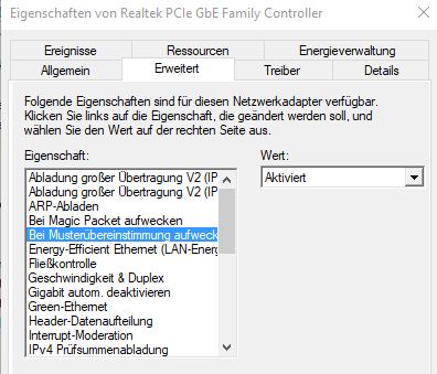 Netzwerkadapter ist von Realtek, da habe ich mir die aktuelle Software von der Seite installiert und folgendes aktiviert: