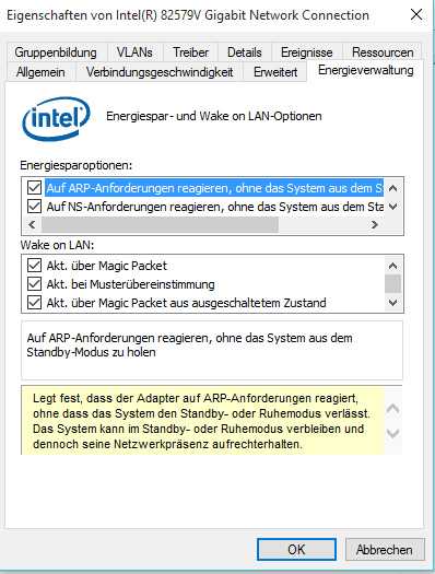 leider kann ich mich nicht mehr erinnern ob die einstellungen im screenshot vorher schon genauso waren, die haken sind alle gesetzt bei WOL.