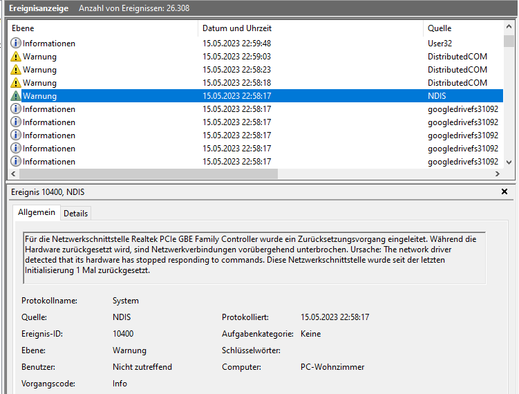 Kannst ja mal filtern, ob das System abstürzt. Kritische Ereignisse anzeigen lassen.