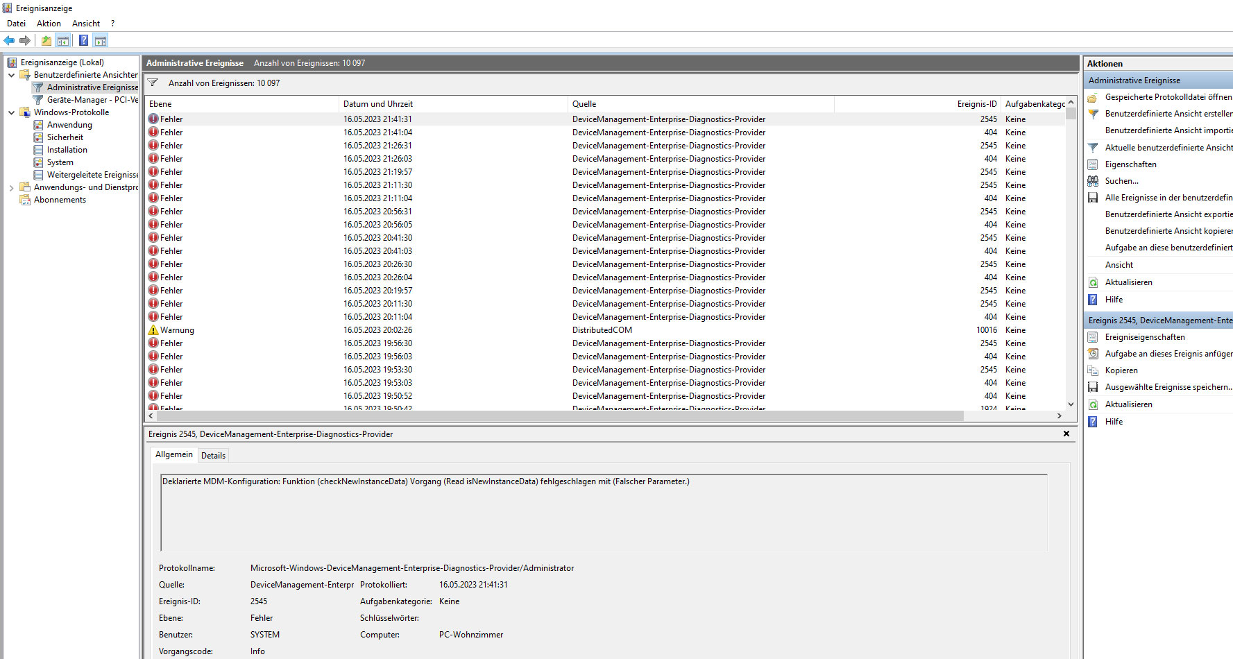 Mir ist v.a. aufgefallen, dass in der Ereignisanzeige unter "Administrative Ereignisse" immer wieder folgendes erscheint: