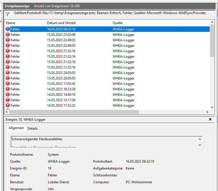 Die txt Datei habe ich gesendet da am screenshot nur ein Bruchteil zu sehen war. Was haben meine ganzen screenshots und uploads von Ereignisanzeigen etc eigentlich gebracht?