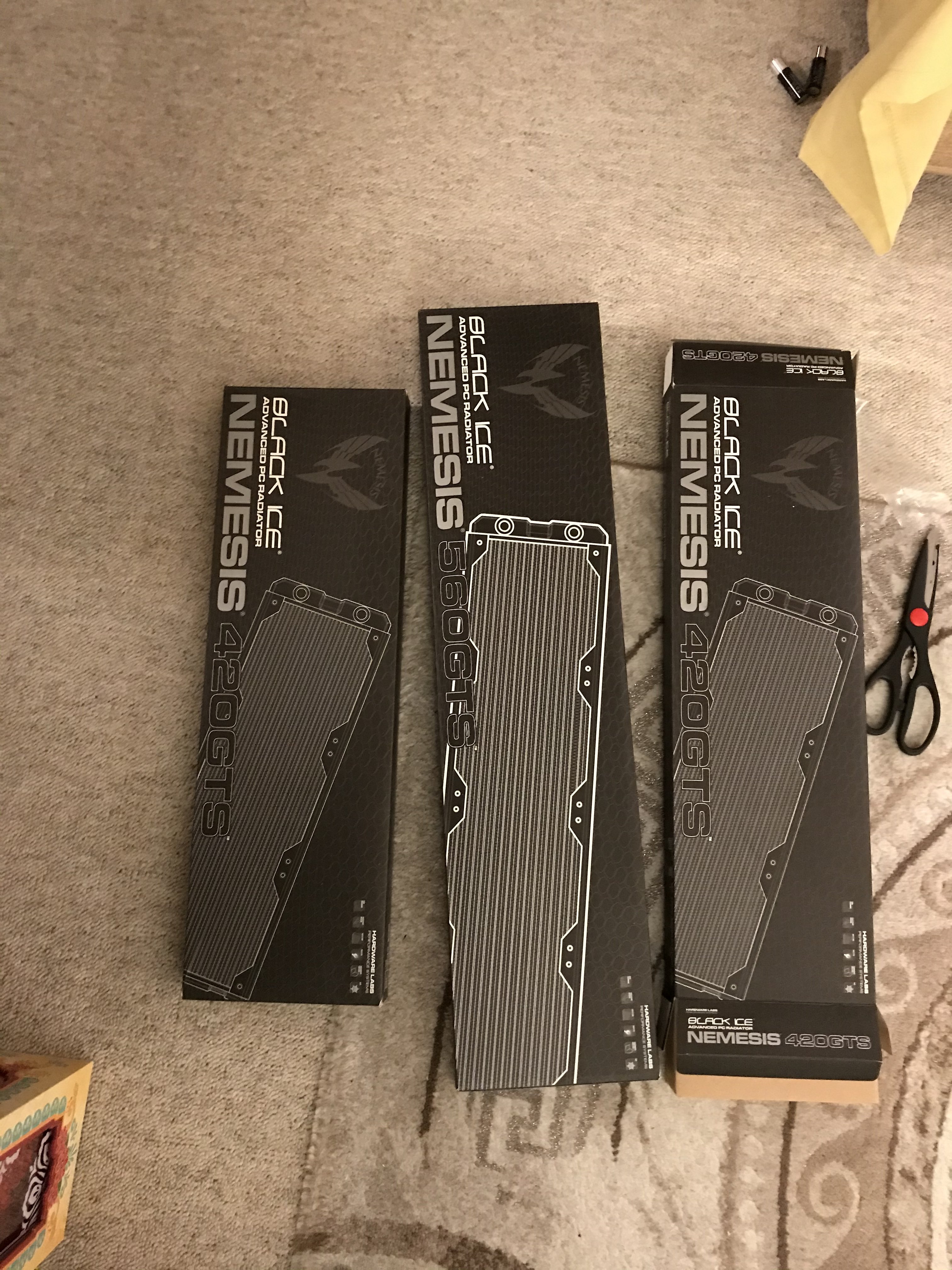 So am Donnerstag kam noch mal Post mit Radiatoren die Phanteks distro plate und CPU sowie Gpu kühler und diverse kleine Teile.