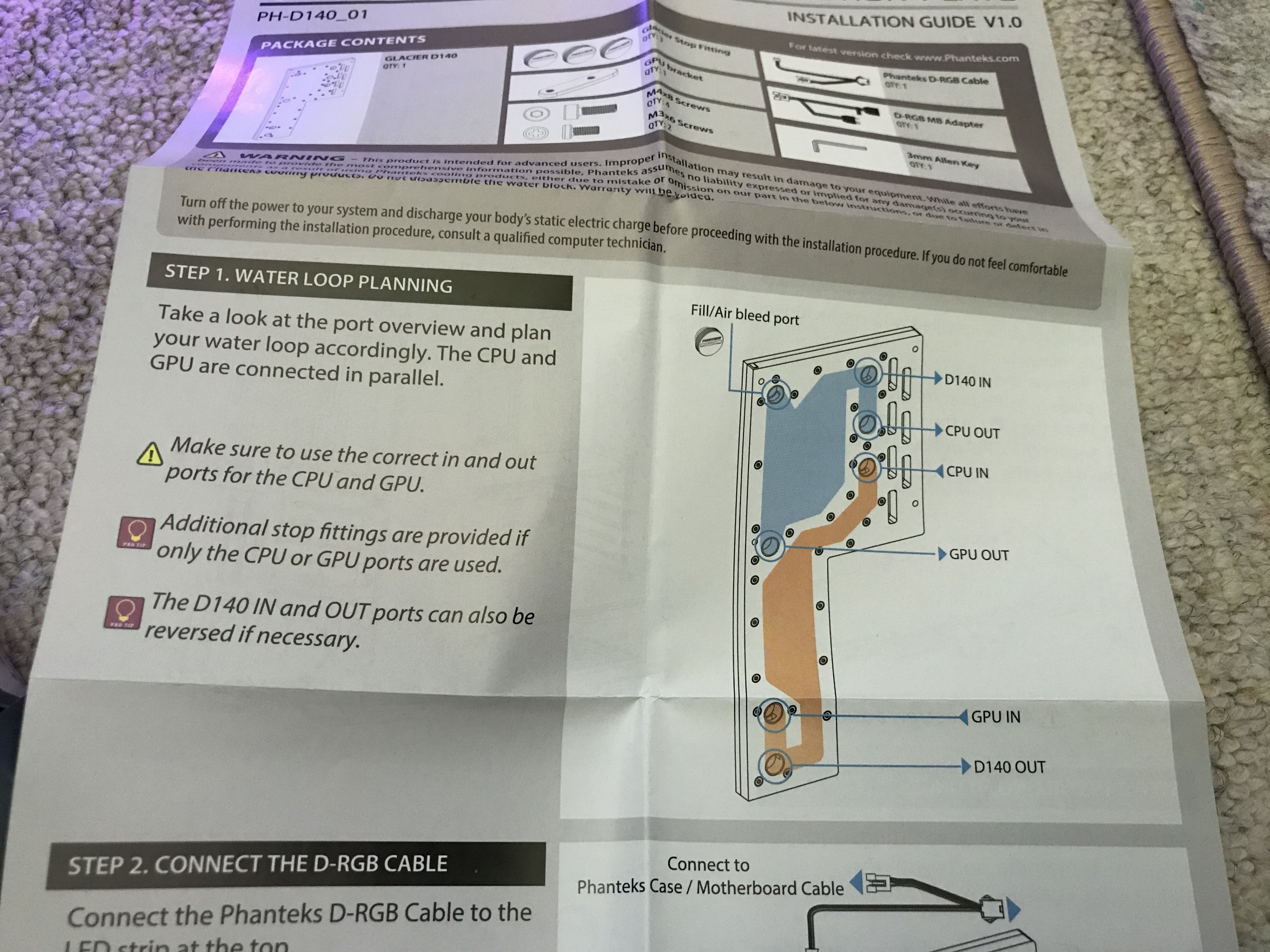 Leider wurde in einem anderen Forum geschrieben die D140 Distro Plate könnte ein Problem darstellen da diese Parallel mit Gpu und cpu verbunden wird da eventuell ja der CPU Kühler eine etwas feinere Struktur hat könne der Kühler zu wenig durchfluss bekommen oder aber auch der der Grafikkarte oder CPU kühler gar dicht machen.