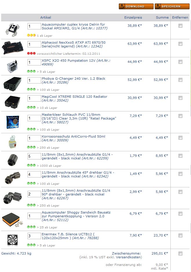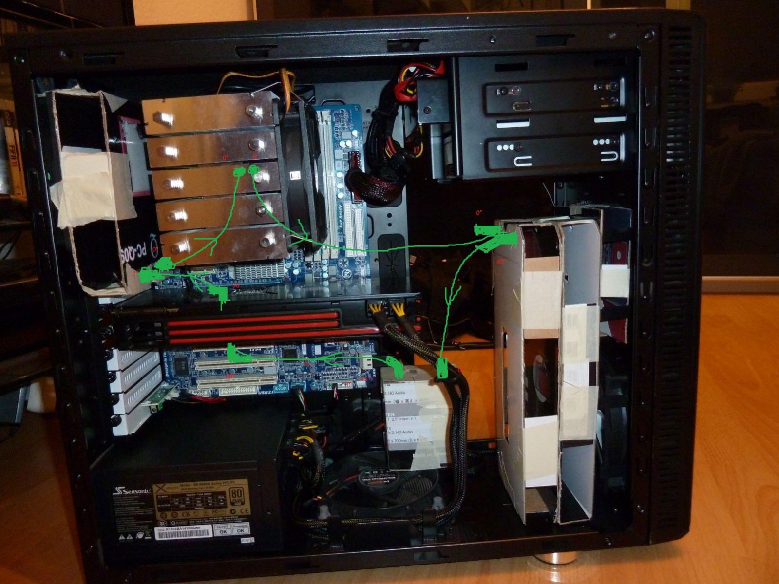 ich möchte mir eine Wakü kaufen, die ca. 300€ kostet, max 350€ wenn es relativ starke Vorteile bringt. Sie soll für meinen PC1 (GPU+CPU) sein und ins Define R3 passen. Hier haben ich schon den Festplattenkäfig entfernt und mir einige Gedanken gemacht. Im Anhang auf den Bildern zu sehen. Die Zusammenstellung ist auch dort, da der Link zum Warenkorb immer wieder gelöscht wurde.