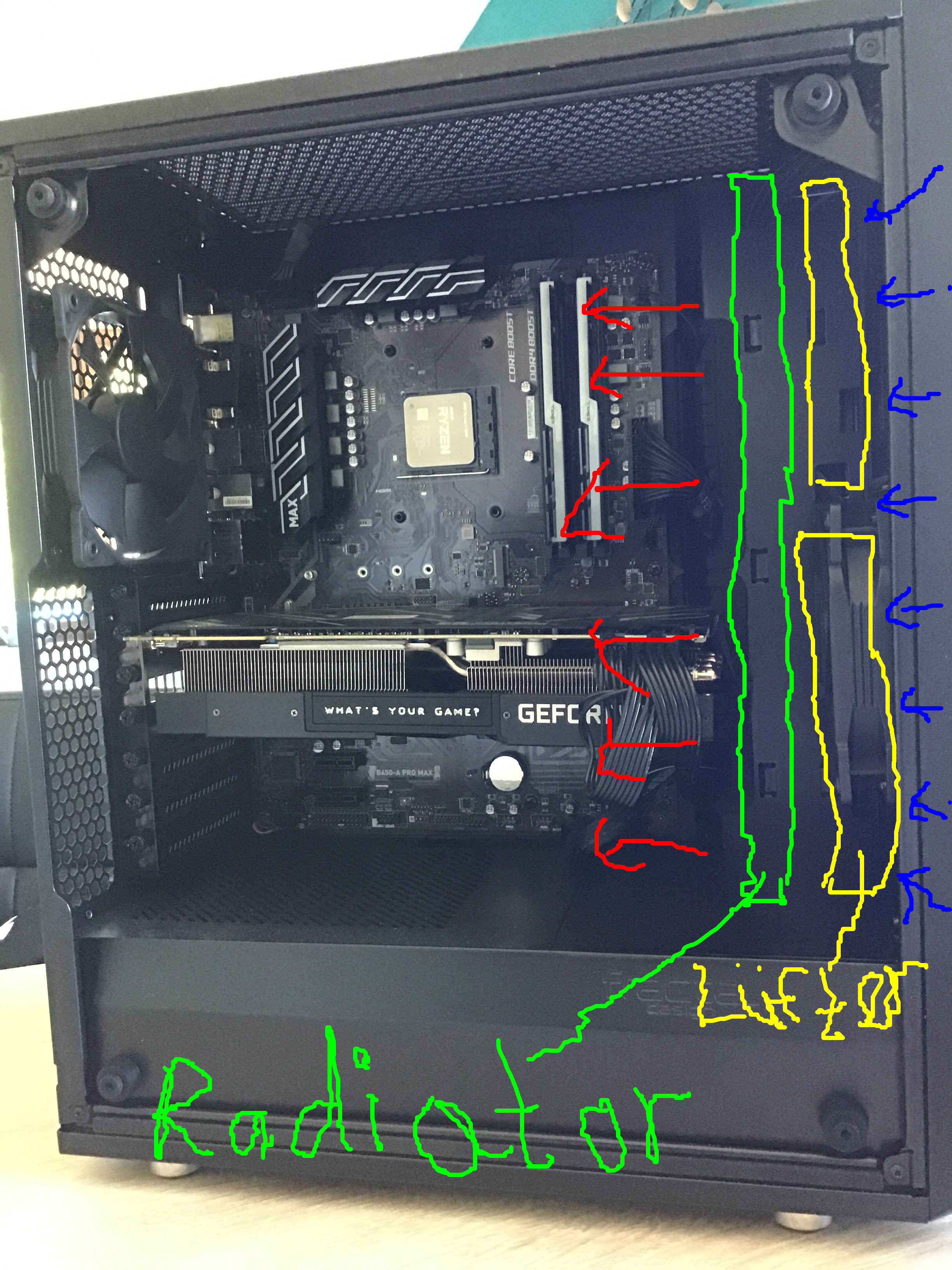 in das Meshify C Gehäuse von Fractal Design habe ich ein MSI B450-A Pro Max eingesetzt und für den genannten Prozessor erstmal den Boxed Kühler von AMD montiert.
