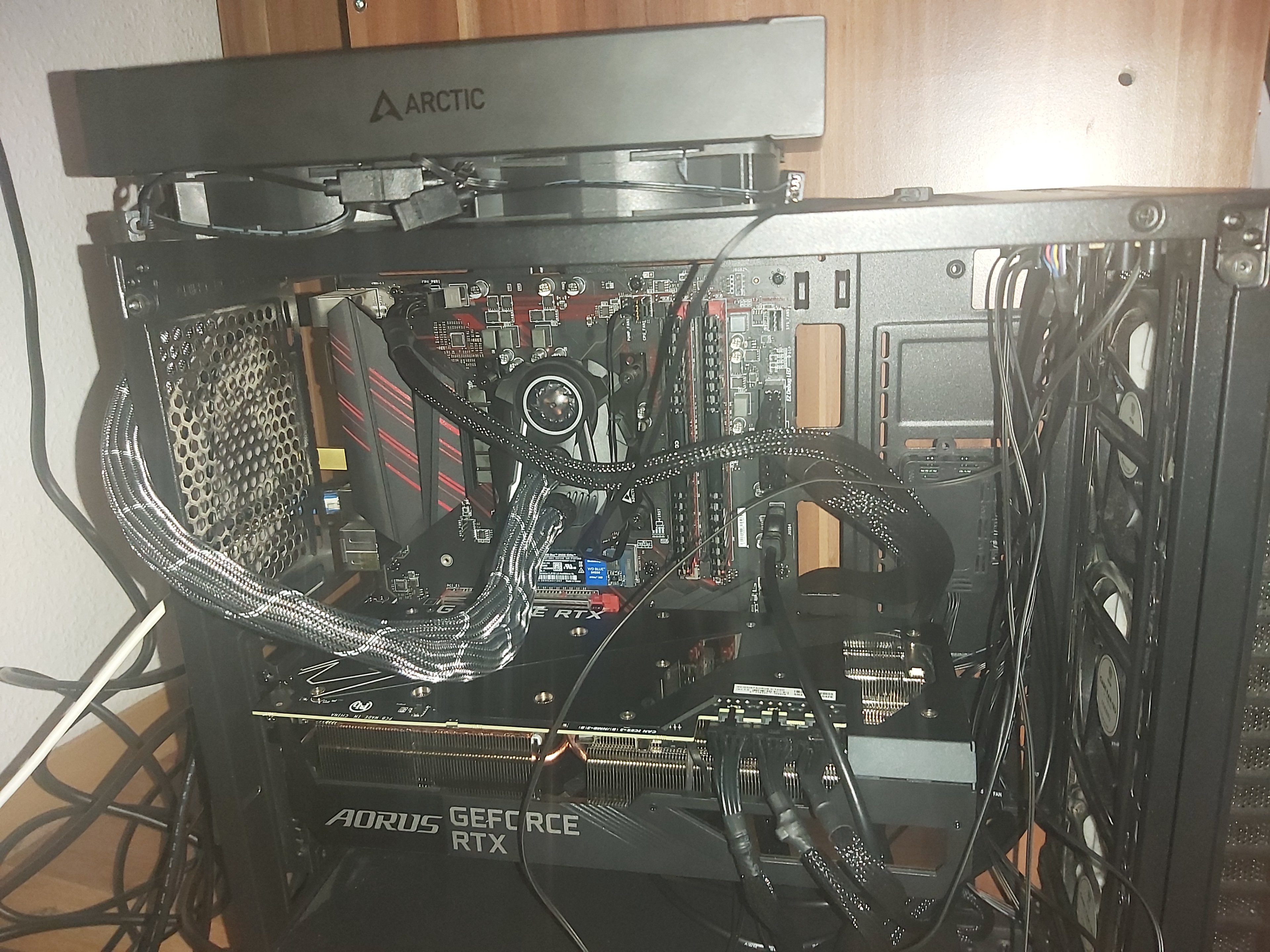 ich habe mir, da men CPU auf teilweise Spitzen bis zu knapp 90 Grad hatte eine AiO WaKü für den CPU bestellt. Habe diese angeschlossen und bis auf, dass ich keinen ARGB Steckplatz am MoBo habe, laufen zumindest alle drei Lüfter ( eine Direkt an der Pumpe und zwei am Radiator). Jedoch wenn ich den PC starte drehen die Lüfter sofort durch und meine CPU Kerne kommen auf ganze 100 Grad.