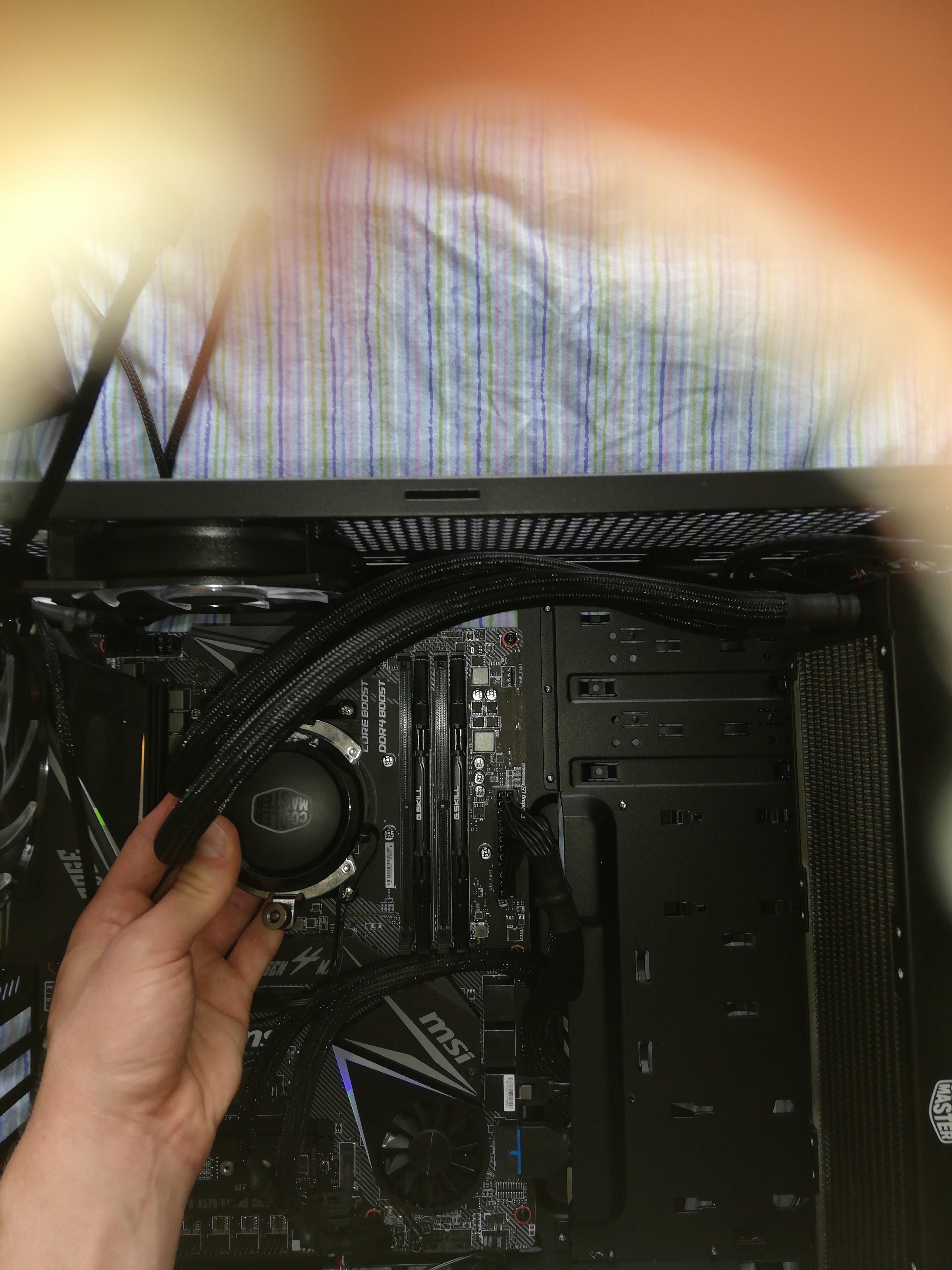 Moin heute ist meine AIO angekommen, ich hab das problem. Bau ich sie so ein das auf dem Schlauch keine Spannungen ist kann ich oben im Gehäuse keine Lüfter einbauen.
