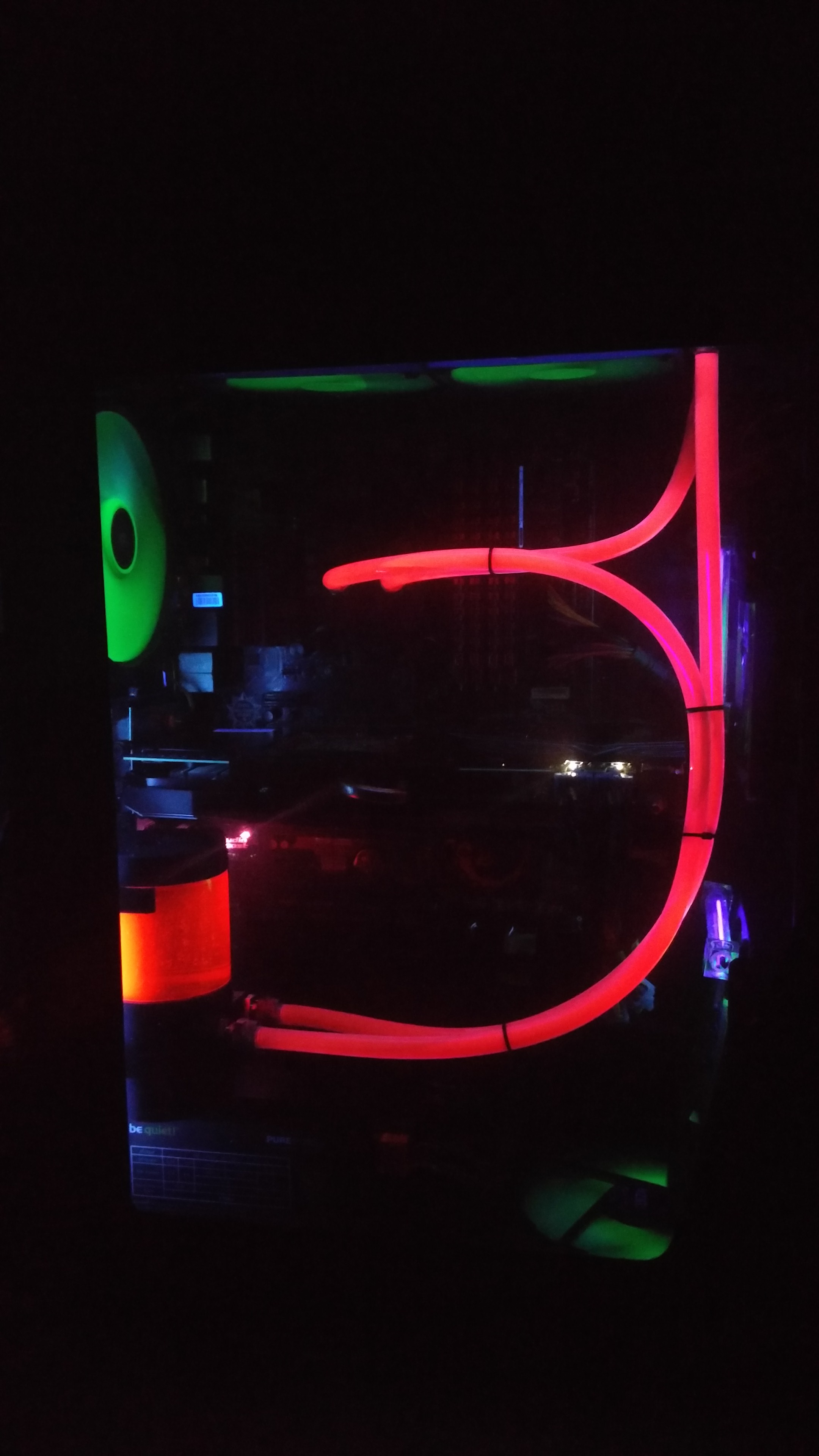 habe heute meine Wasserkühlung fertig verbaut. Eine nervenaufreibende Geschichte, die netten Schläuche in die Verschraubung zu bringen, dennoch geschafft.