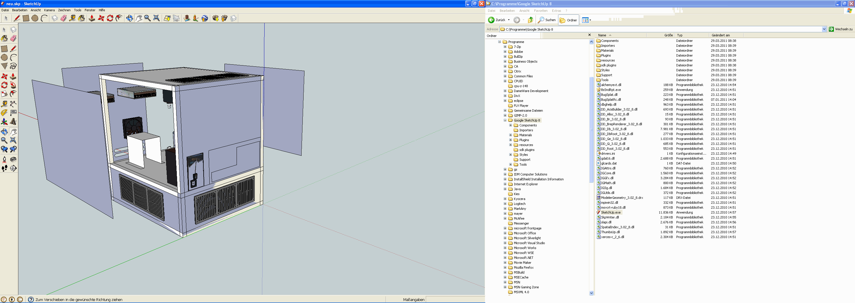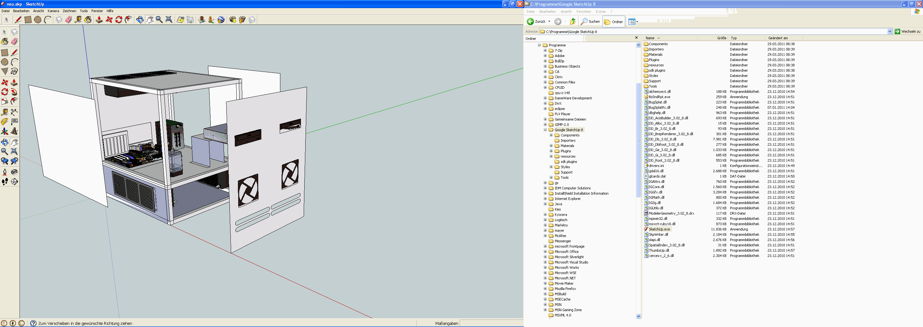 Dabei ist die Pumpe, Laufwerke etc. symbolisch eingezeichnet, weil ich kein Bock hatte alles zu designen. Es sind übrigens 4 Laufwerksschächte zu je 2 auf jeder Seite und dazwischen der AB-G.