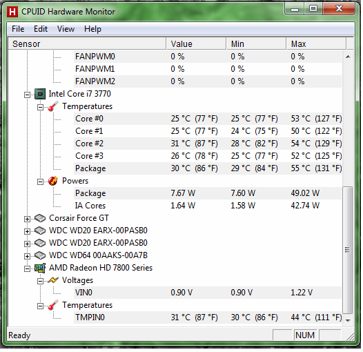 Ich habe aber auch eine hohe Differenz bei einem Kern. Der kühlste ist 28 im Idle und der höchste 38, wobei sich das bei Last wieder relativ angleicht.