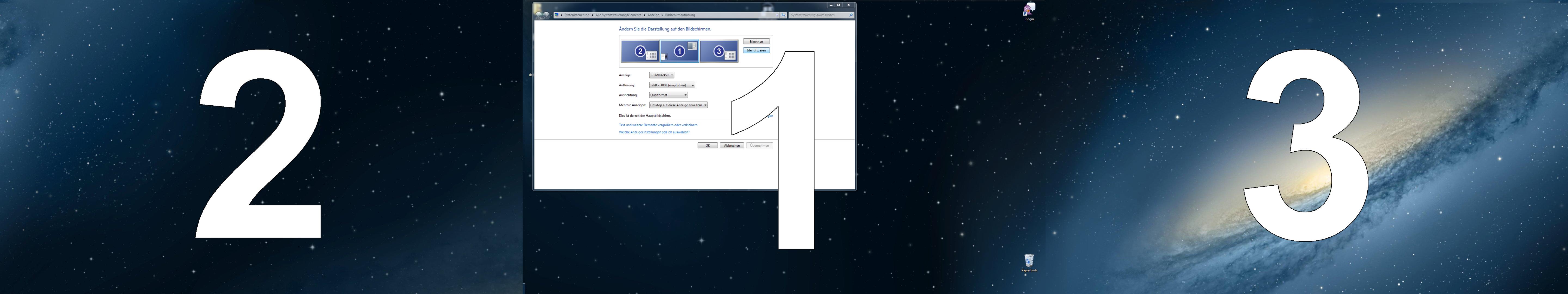 Wenn ich den linken Monitor als Standardbildschirm festlege, wird der Wallpaper korrekt angezeigt, da linkes Drittel des Wallpapers ja im Standardbildschirm angezeigt wird. Allerdings soll der Monitor in der Mitte der Standardbildschirm werden.
