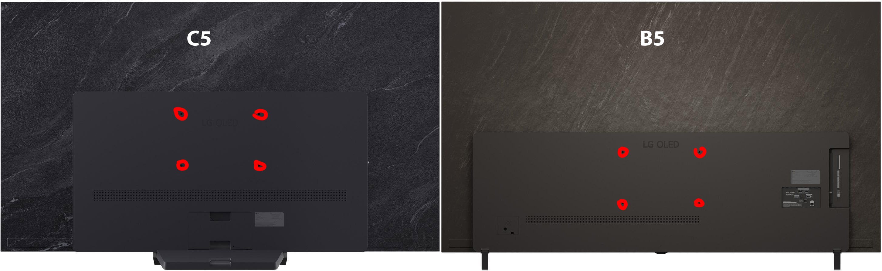 Ich würde mir gerne einen LG C5 OLED kaufen. Leider ist mir aufgefallen, das die Löcher für die Wandhalterung beim C5 wesentlich höher liegen als beim B5 und mit meiner Position der Wandhalterung inkompatibel sind (TV würde zu tief hängen.).