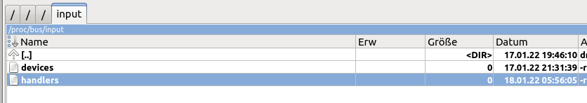 Was uns interessiert ist der Handler - in diesem Fall "Handlers=mouse4 event10" in der sechsten Zeile.