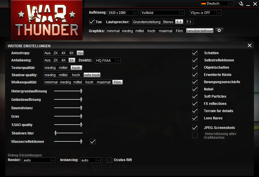 Zur Zeit spiele ich War Thunder auf meinem MSI GE 60 mit i5 3230m mit GTX660m Grafikkarte.Läuft schon auf ziemlich hohen Details,aber leider nicht auf max.