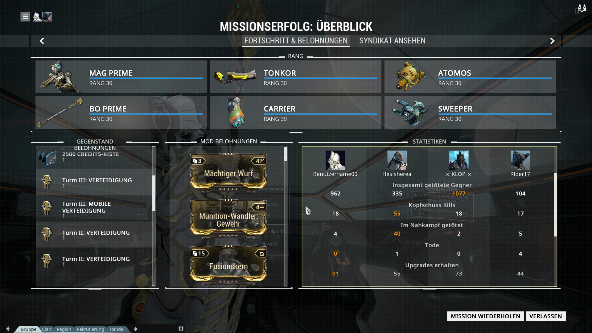 Direkt danach nen run mit randoms bis 3100 Punkten (lvl 100) gemacht. Die Mission farmen wohl nur gute Spieler ab. ^^