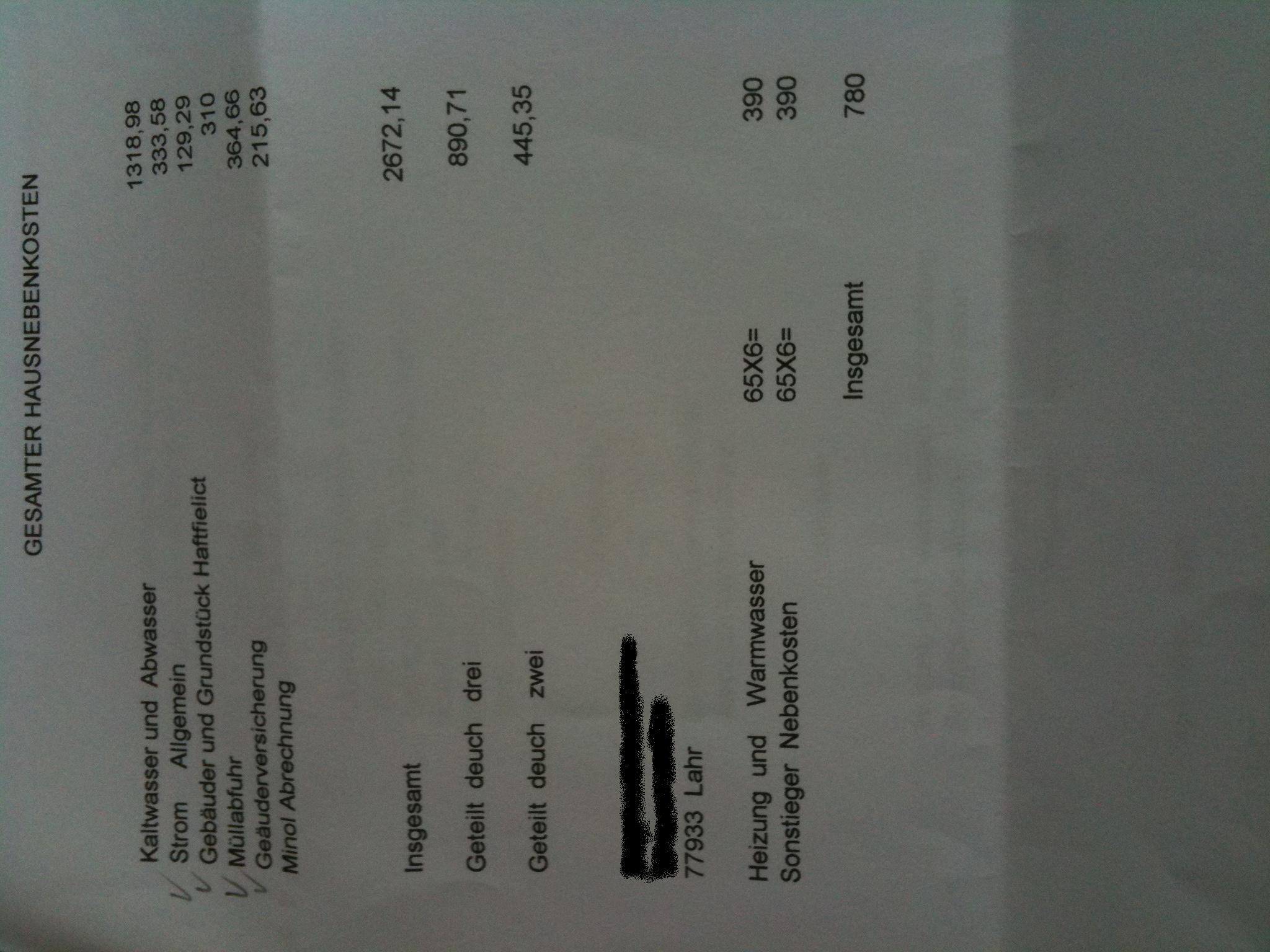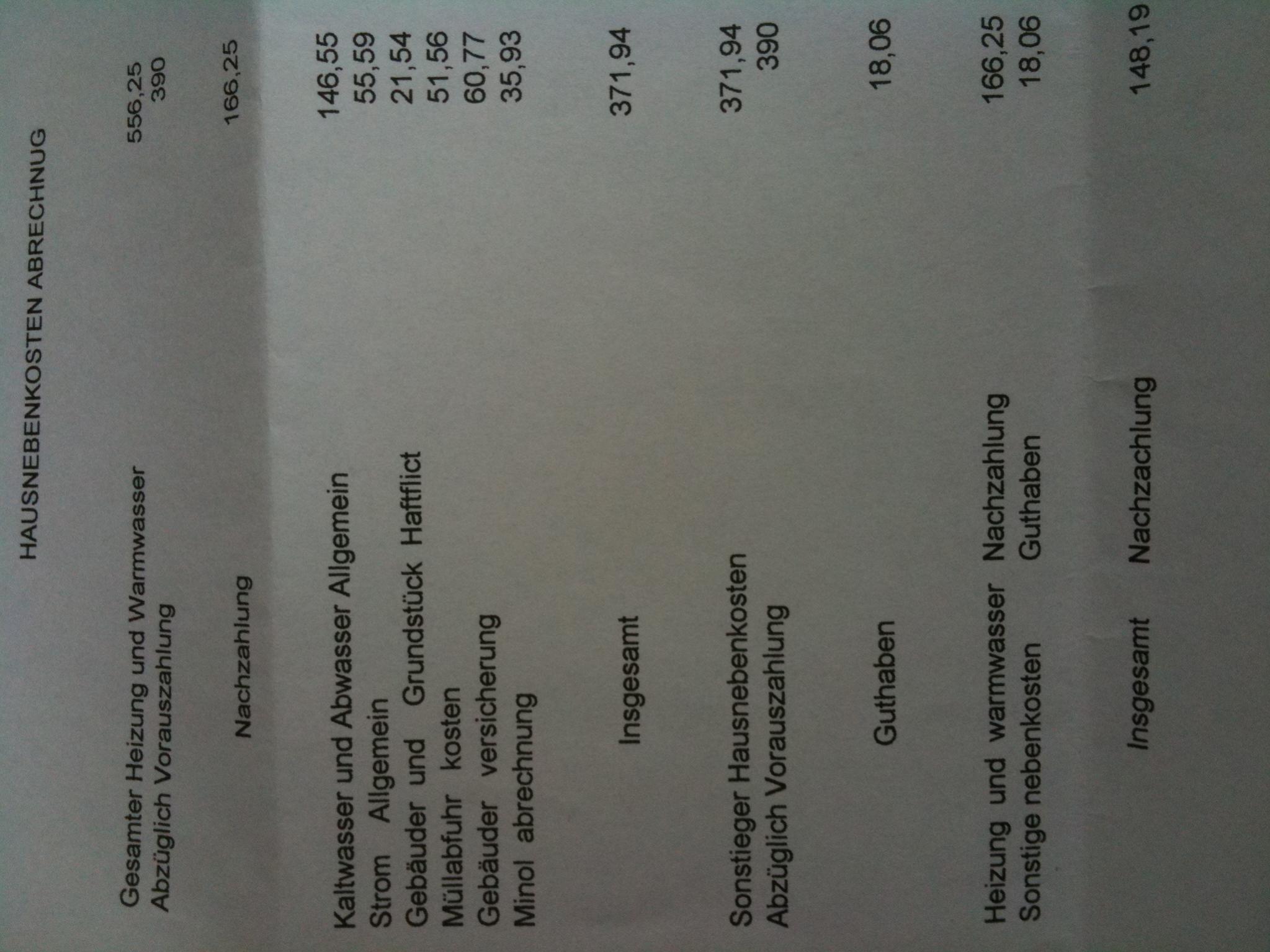 Wäre schön wenn ihr mir helfen könntet, falls es etwas bringt kann ich Morgen Bilder von der gesamten abrechnung machen und mal reinstellen.