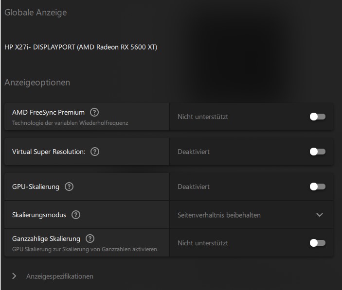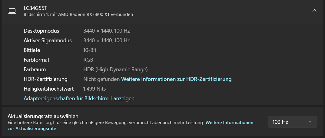 Im Treiber sehe ich dann, trotz Werkseinstellungen, auch wieder Ungereimheiten. Freesync lässt sich nicht mehr aktivieren. Mal schauen ob ich mich vorm Wechsel nochmal dran setze.