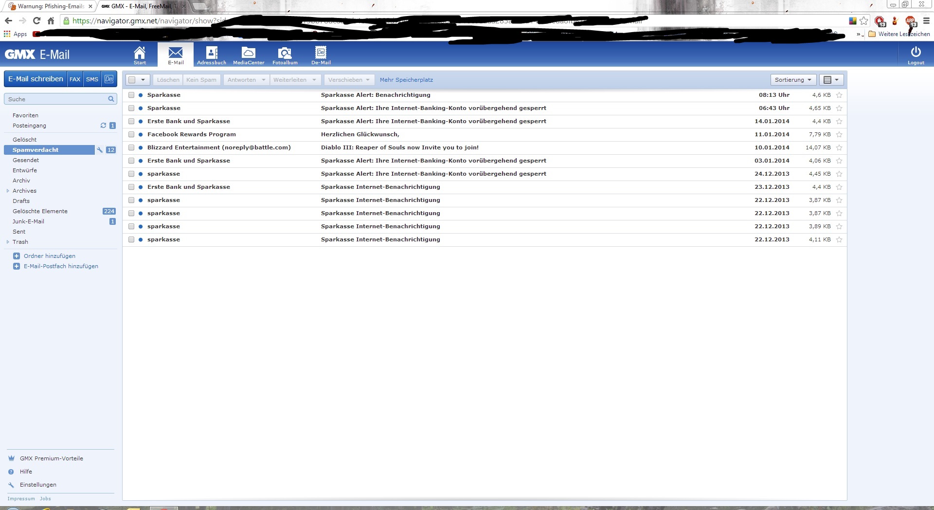 Wollte mal eben berichten, habe hier bei gmx.com 2 Phishing Emails bekommen, so sieht eine davon aus: