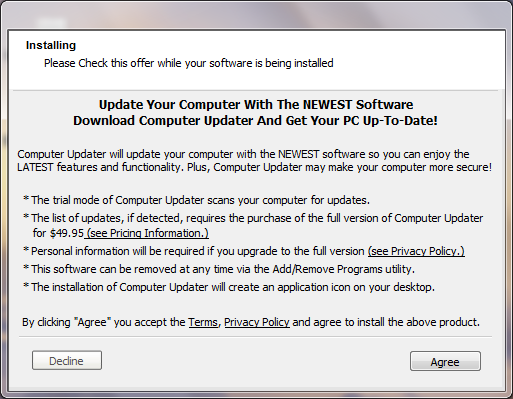 Wir empfehlen Ihnen, alle dafür vorgesehenen Häkchen zu entfernen, oder diese Zusatz-Software abzulehnen (Decline)