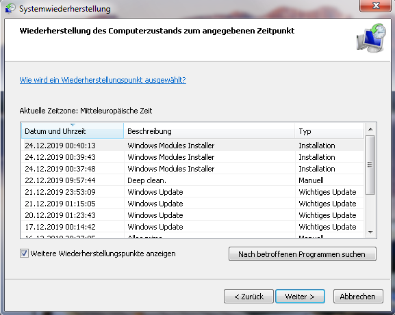 Bei dieser Aktion wurden auch, wie erwartet, einige frühere Wiederh.punkte gelöscht.