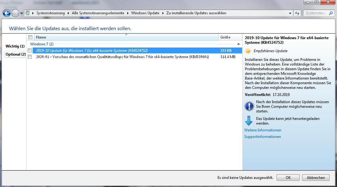 Warnung vor Windows-7-Update(s)! (KB4474419!)