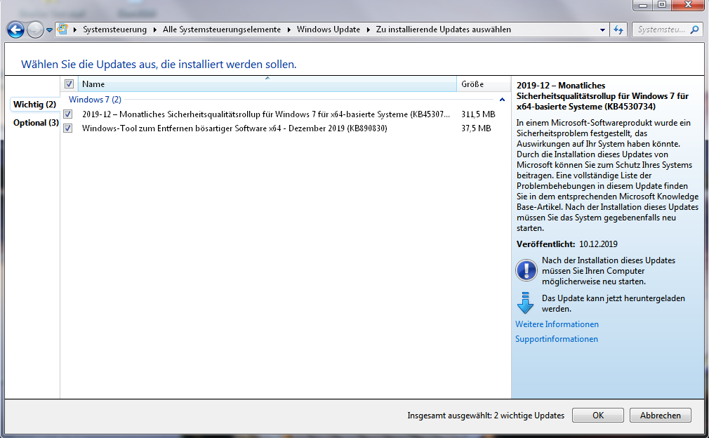 Dann würde ich mich gerne den neuesten Win7-Updates zuwenden?