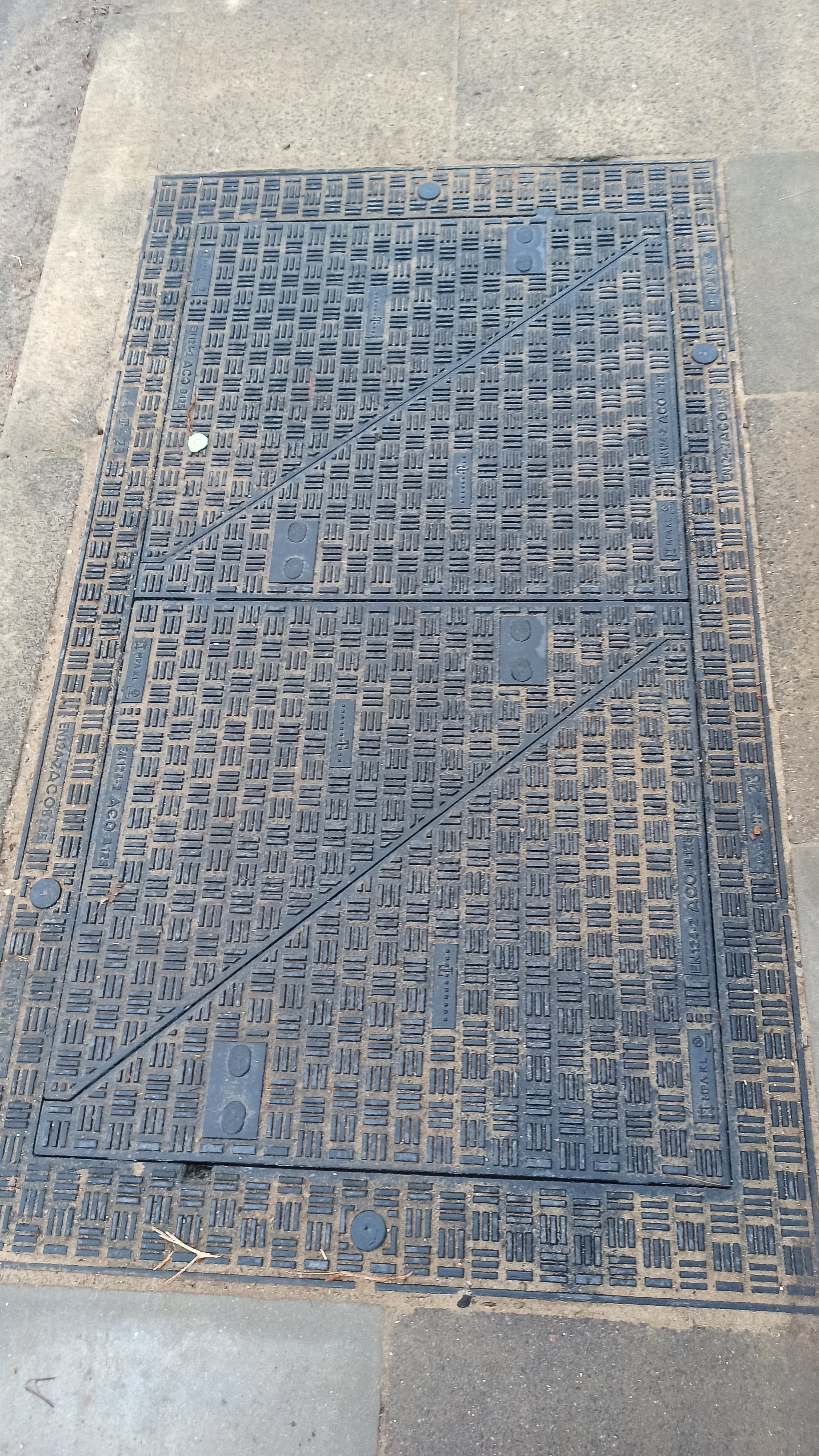 Es handelt sich um einen Zugang zu einem Kabelschacht, darunter befindet sich eine Treppe/Leiter und ein Kabelschacht.