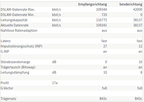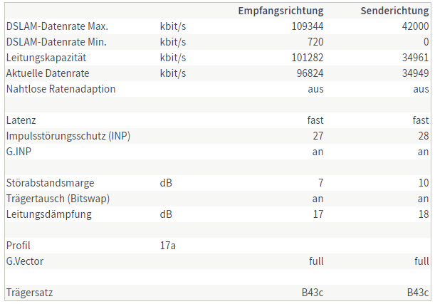 Bis vor ein paar Tagen stand im DSL Verfügbarkeitscheck auch noch, dass bei mir kein 100K geht, die Werte in der Fritzbox waren aber schon seit ca. 2 - 3 Wochen so.