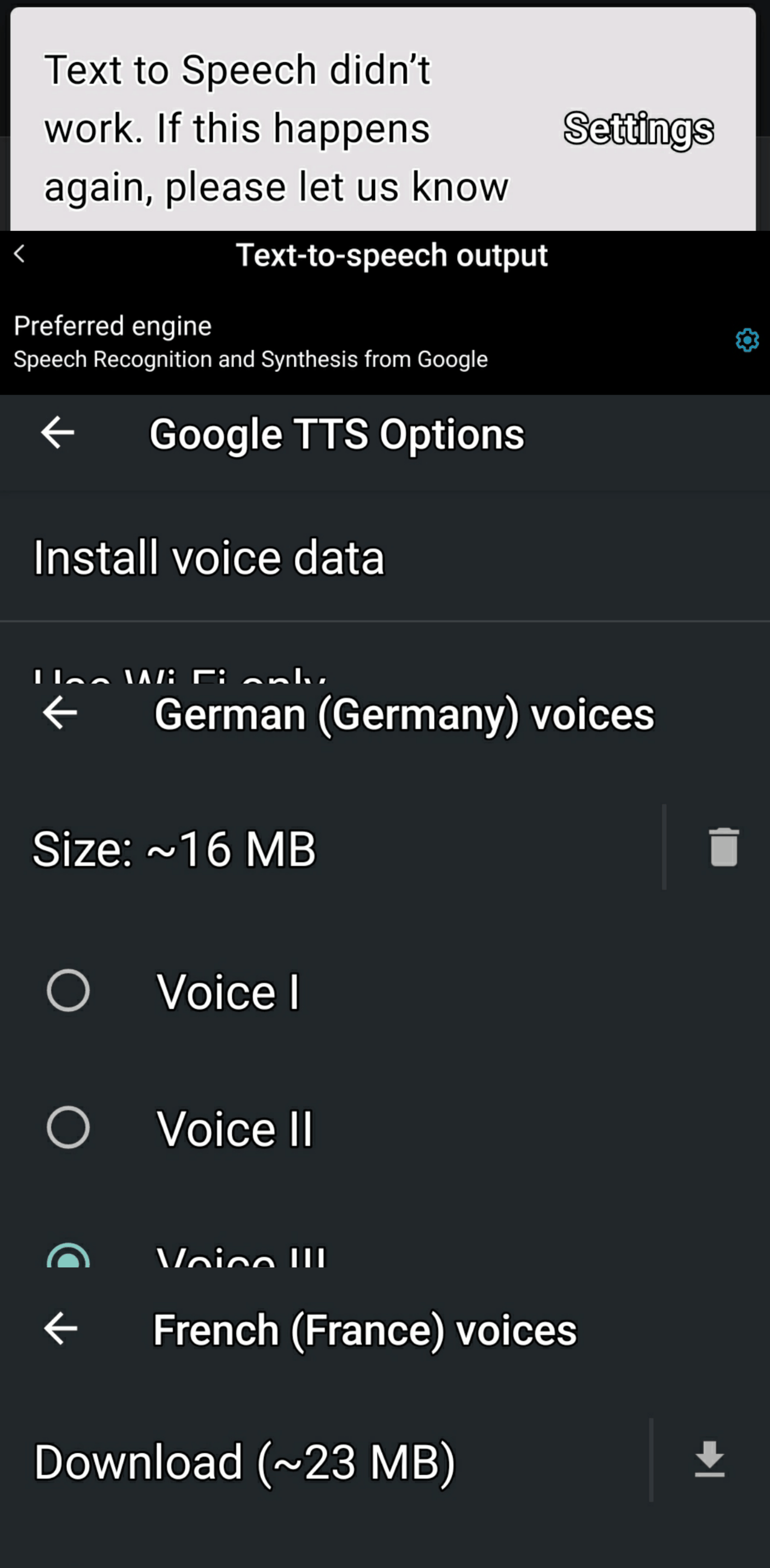 also ich bin echt am ende mit den Nerven. Ich habe yandex translate und kann da offline text übersetzen und lesen lassen. Aber nur in deutsch und englisch. Bei anderen sparchen sagt es "Text to speech didn't work." Und lässt mich in settings gehen. Da kann ich dann install voice data drücken und da sehe ich, dass in englisch und deutsch was ist und bei anderen sprachen ein pfeil der auf einen strich zeigt. Ich drück da die ganze zeit drauf aber es scheint nichts zu passieren?