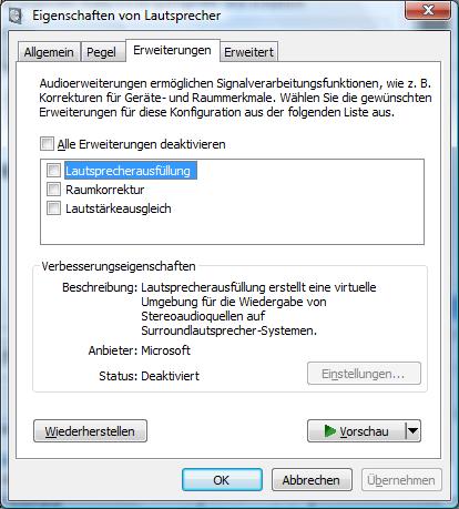 Hab ein GA-MA78GM-S2H Mainboard in meinem HTPC, welches ja einen 8 Kanal Realtek ALC889A Soundchip hat, als OS kommt xp MCE zum Einsatz. Jetzt wollte ich daran mein "altes" Creative 5.1 Desktop Theatre anschließen. Hab die Kabel nacheinander reingesteckt und jedes mal im drauffolgenden Popup Fenster des Gigabyte Soundmanagers die jeweilige Verwendung für den betreffenden Stecker angegeben (also front für den grünen stecker, hinten für den schwarzen und center/subwoofer für den orangenen)
