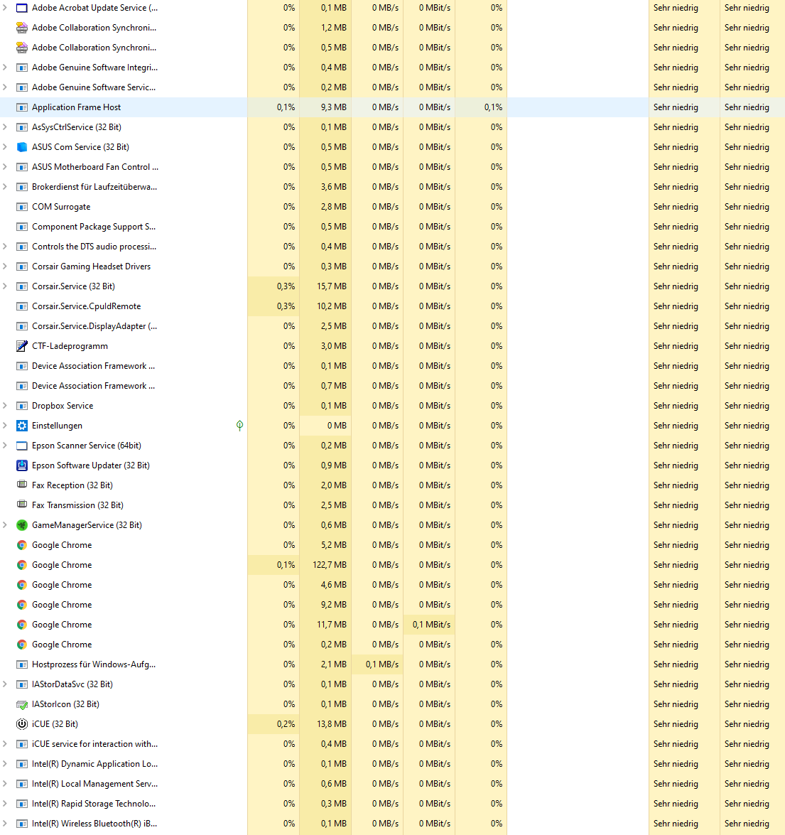 Lösungsansatz: Ich habe ein wenig im Task-Manager (siehe Anhang) rumgespielt und bin zu folgendem Entschluss gekommen--> Beendet man ein paar Tasks im Task-Manager, laufen alle Spiele wieder flüssig mit kontinuierlich sehr guten FPS-Zahlen. Ich kann mir das jedoch nicht erklären, vor allem weil die Leistung der Grafikkarte bzw. der CPU doch nicht aufgrund des Task-Managers, sich verschlechtern kann? Oder etwa doch???
