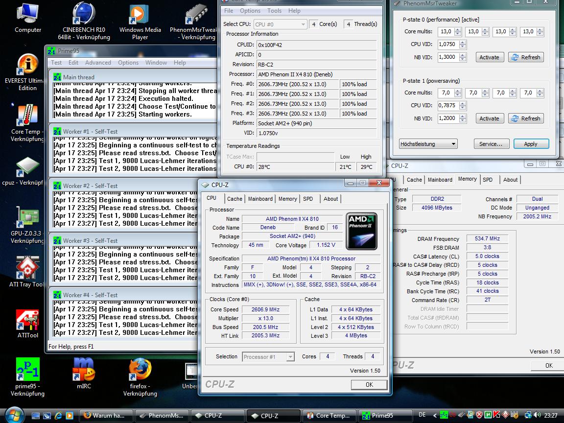 Ich startete voher Prime95 um die NB zu testen. 128-1024k.