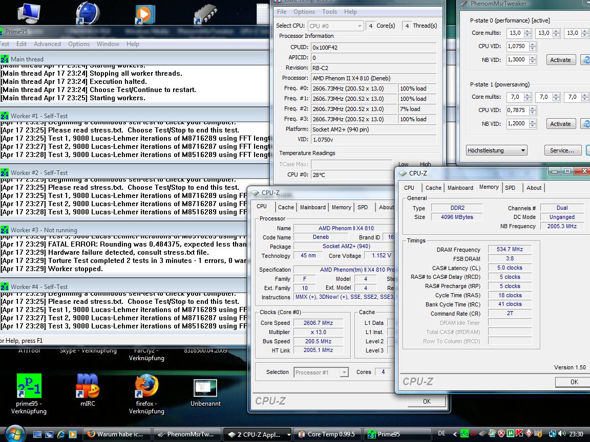 Also ging ich Prompt mal auf 1.3000v. Jetzt lief Prime bis zum 448k test. Dann fiel im Test 2 Kern 3 wieder aus.