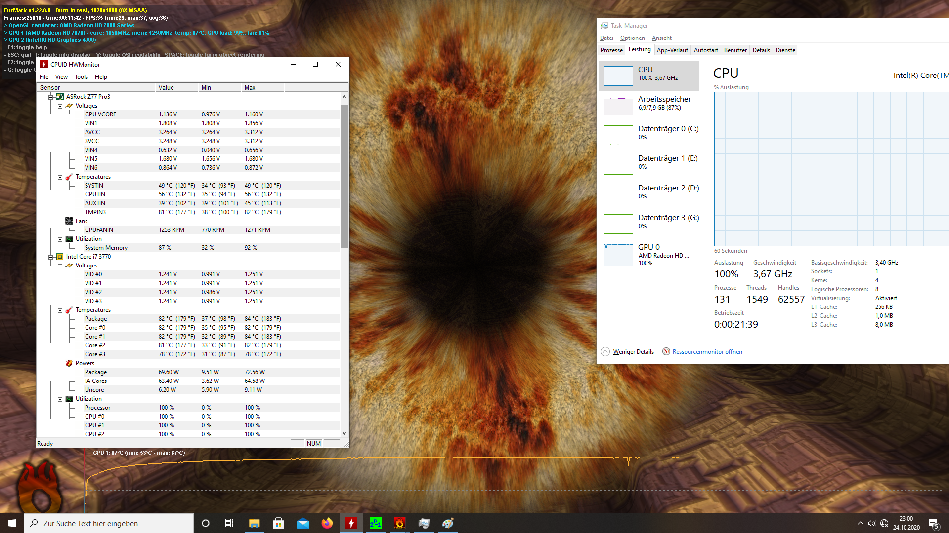 So hab jz mal 10 minuten prime95 und furmark laufen lassen. ich denke die temps gehen voll in ordnung oder? zumal ich mich nicht wirklich erinerrn konnte, dass die graka weniger warm mit den gehäuse lüftern wurde (aber wie gesagt kp mehr).