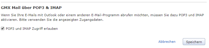 Nachtrag: Bei GMX einloggen, oben auf E-Mail klicken, rechts unten auf Einstellungen und da sieht man dann schon "POP und IMAP Abruf", oder so ähnlich.