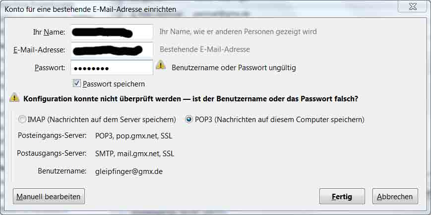 Warum kann ich gmx-accounts nicht in Thunderbird integrieren?