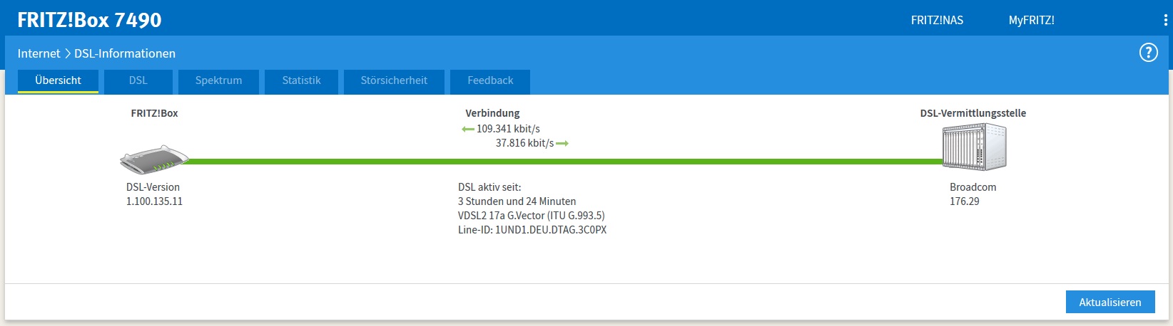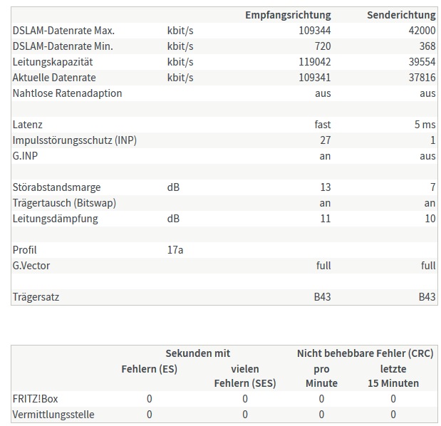 Da wäre die maximale des Outdoor-DSLAMs 42000 kbit/s, aktuell aber "nur" 37816. Die eigentliche Leitungskapazität ist zwar auch nur 39554 kbit/s im Upload, aber dann müsste ich doch rein theoretisch wenigstens die kriegen, oder wie erklärt sich das?