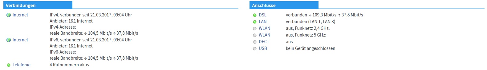 Im Anhang habe ich die Geschwindigkeitsauswertungen der FritzBox für meinen Anschluss.