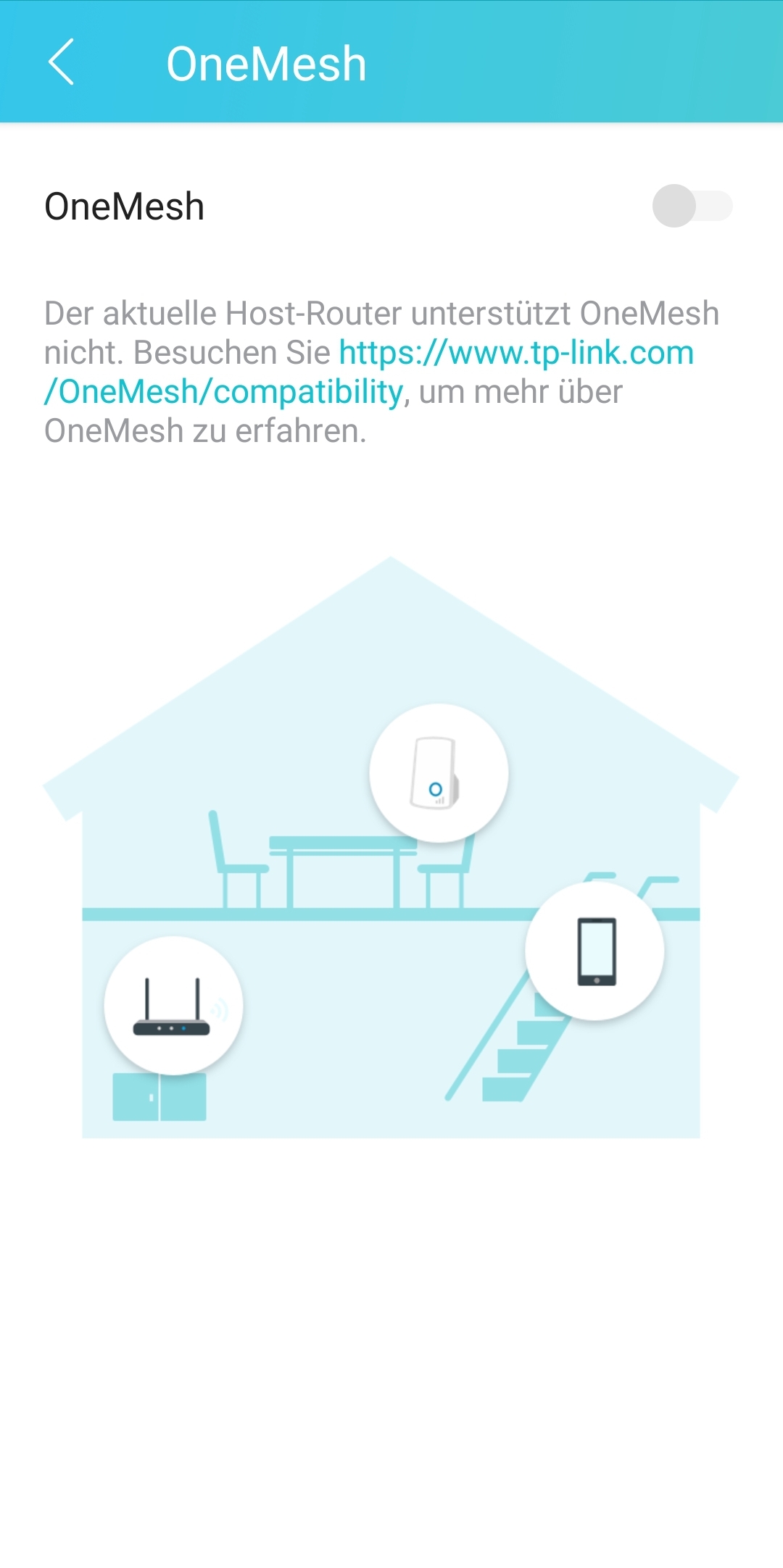 Anbei ein Screenshot, das zeigt was ich meine. Onemesh ist ausgegraut. Woran könnte das liegen, muss ich in meinem Router Fritz Box 6490 cable was einstellen damit es klappt?