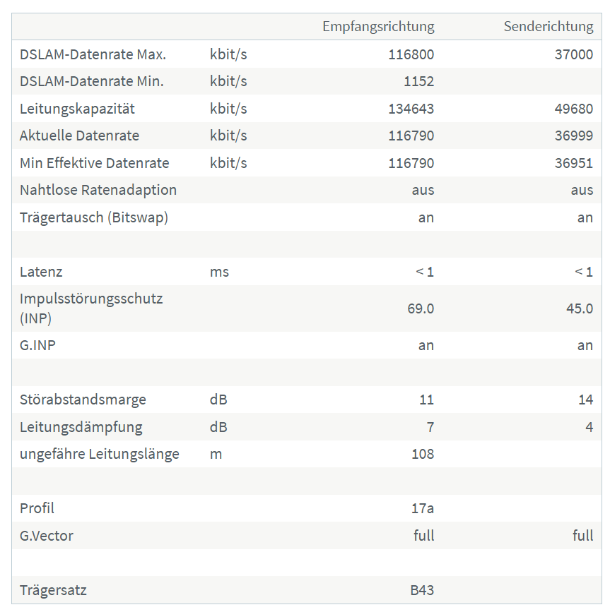 08.11.24 03:44:42 Information des Anbieters über die Geschwindigkeit des Internetzugangs (verfügbare Bitrate): 109935/36860 kbit/s