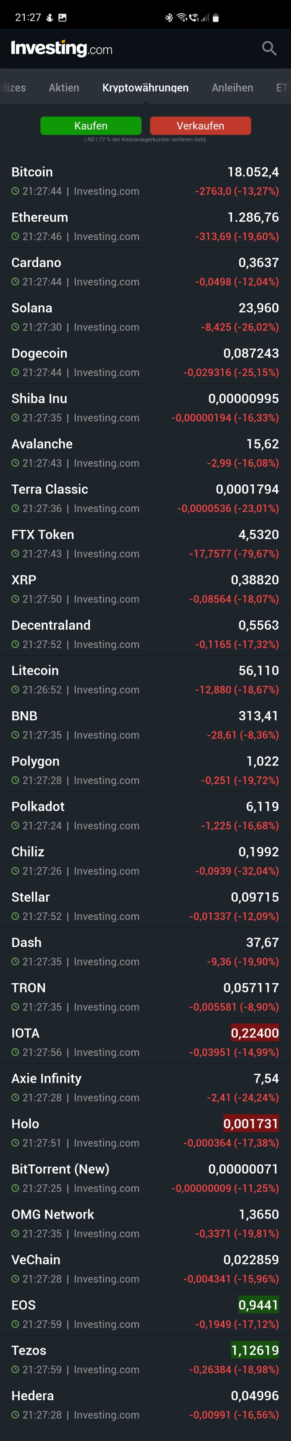 Warum? Der intrinsische Wert der Coins ist 0. D.h. ein Coin ist immer nur so viel wert, wie jemand bereit ist, dafür zu zahlen.NameHere schrieb:Egentlich sollte der Kurs steigen.