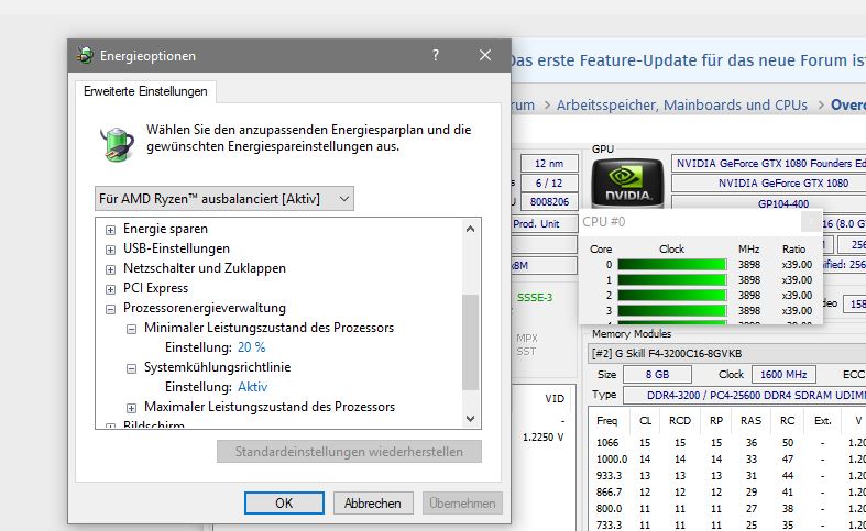 Mittels ausbalanciertem (Ryzen) Energiesparplan hat die CPU auch auf 1,5GHz im idle runtergetaktet. Heute fiel mir aber auf, dass die CPU wieder dauernd auf 3,9 läuft und ich weiß0 nicht warum
