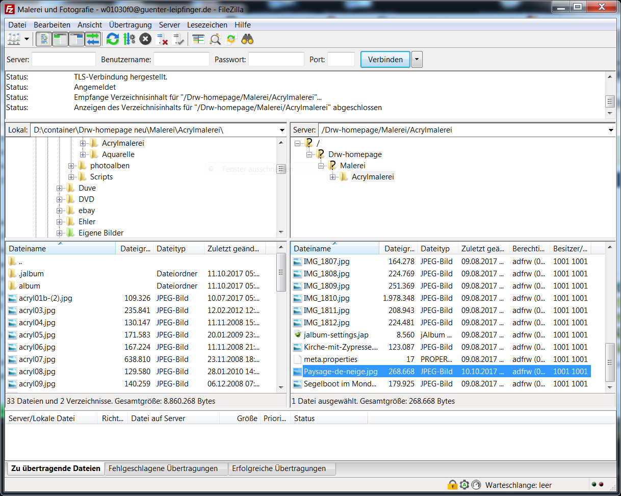 4. Klicken Sie auf "Upload" (nur die Änderungen werden hochgeladen).